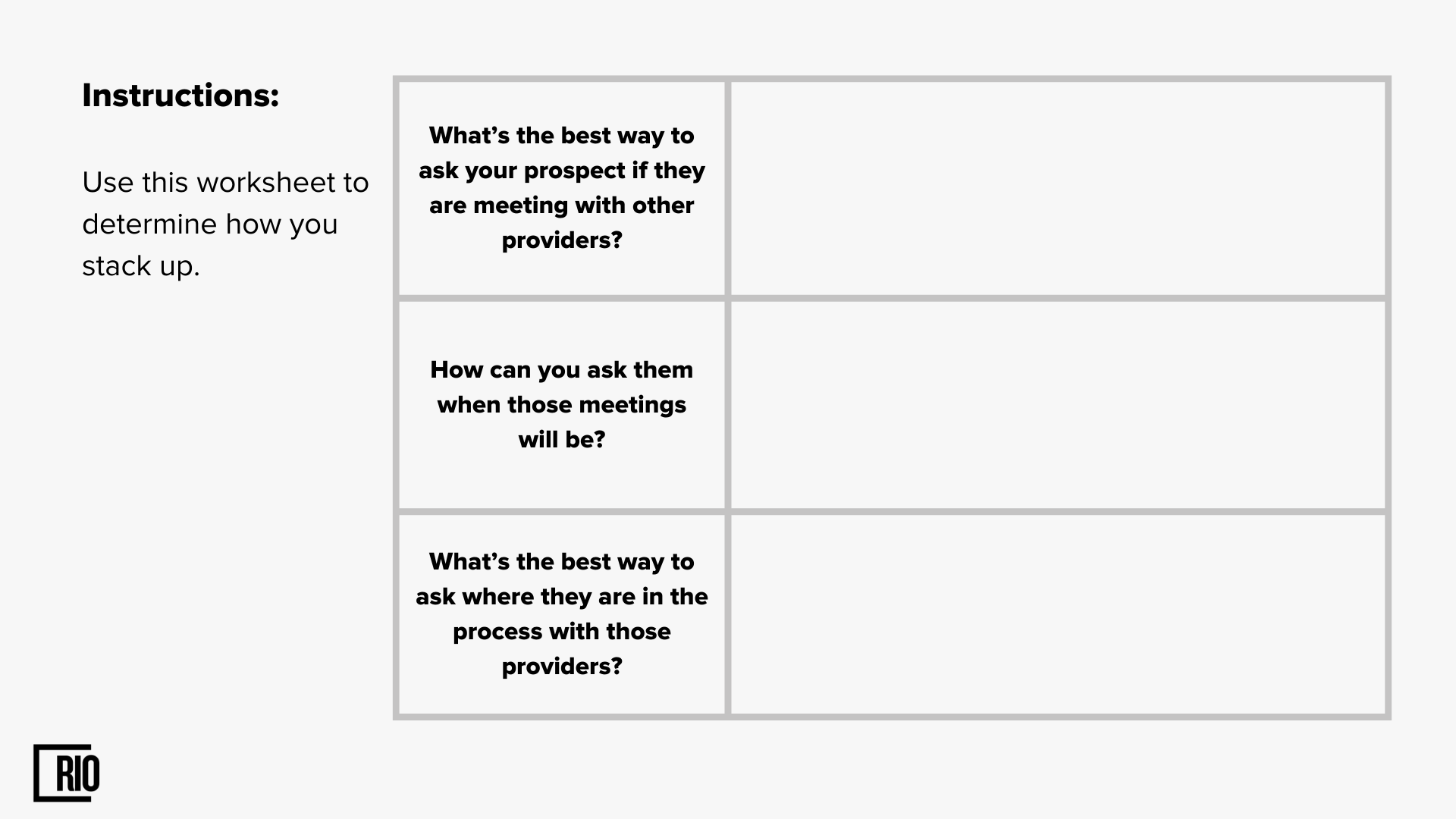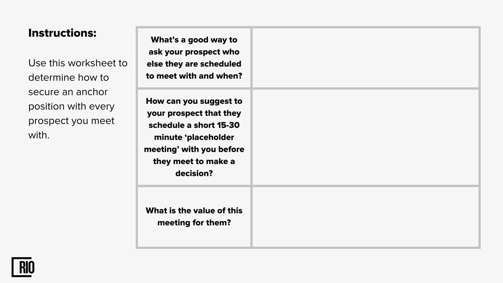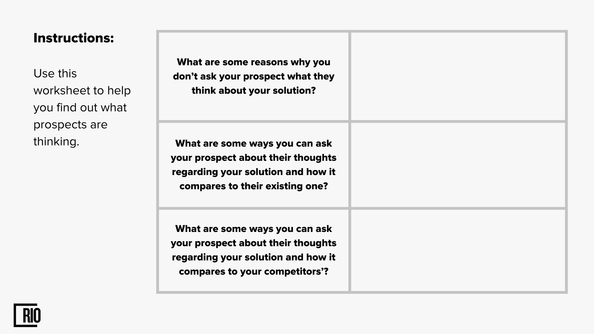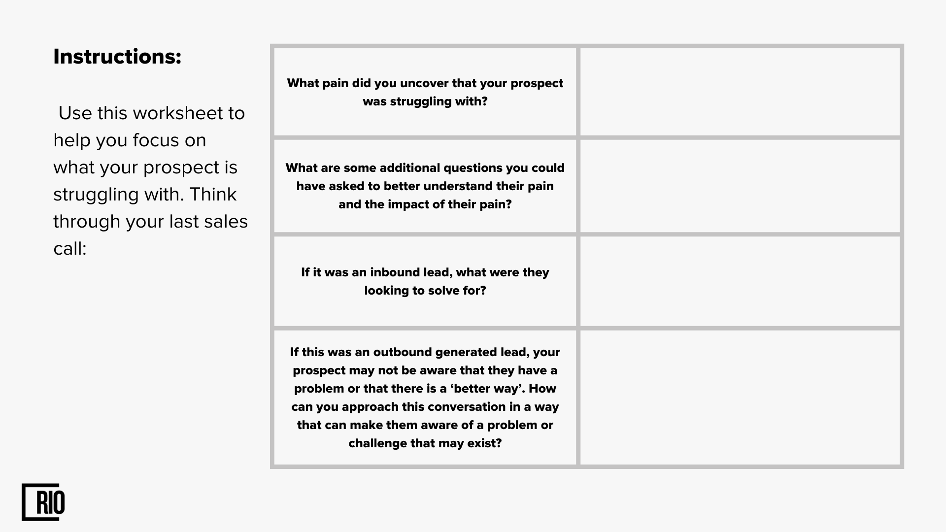 This will help us tailor our discussion to the prospect’s needs.