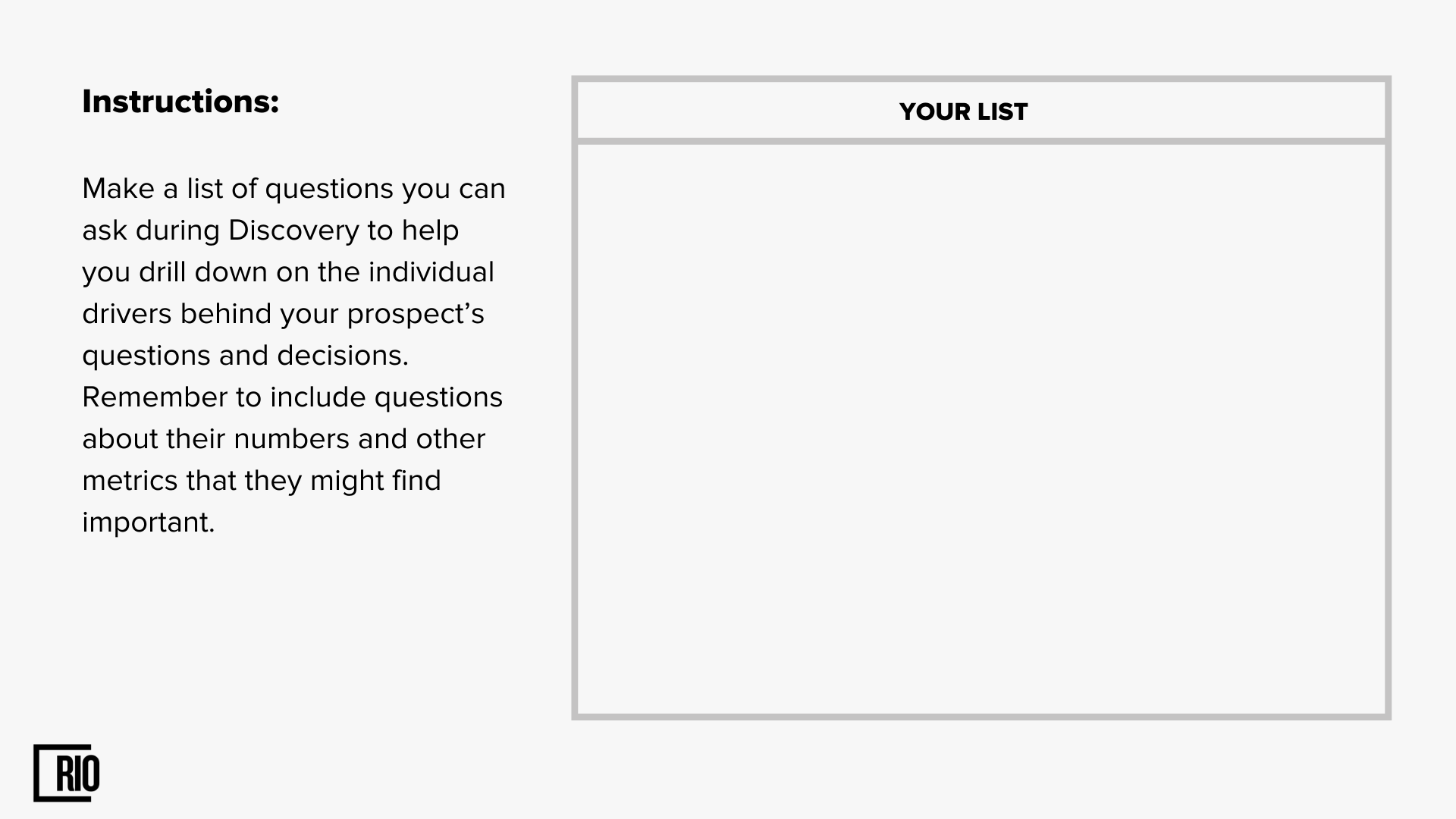 It doesn’t matter if you are a brand new sales rep or you have a lot of experience, it’s a good idea to have your discovery questions written out and in front of you.