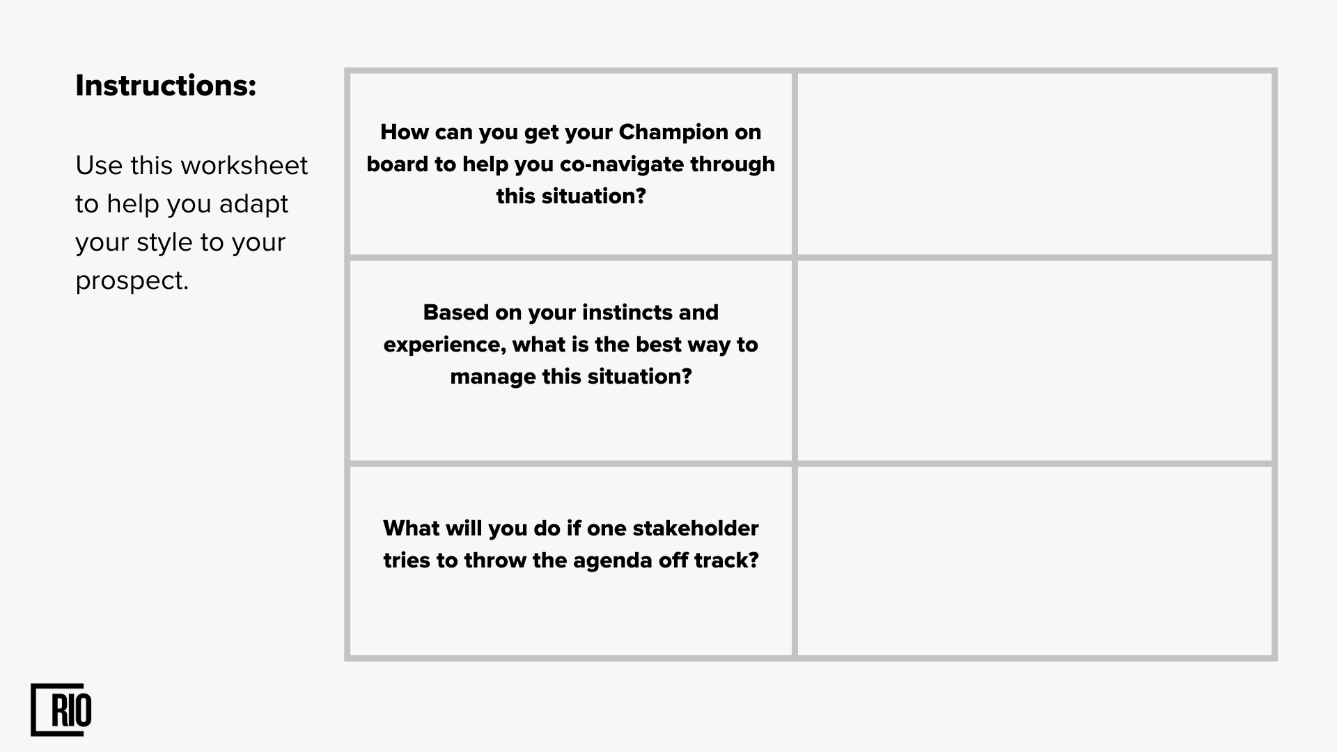 But number two, make sure you are in control of the meeting and don't let the champion take over. You should be the one asking questions and guiding the conversation. If they have more questions, suggest having a separate call so you can cover everything on the agenda.