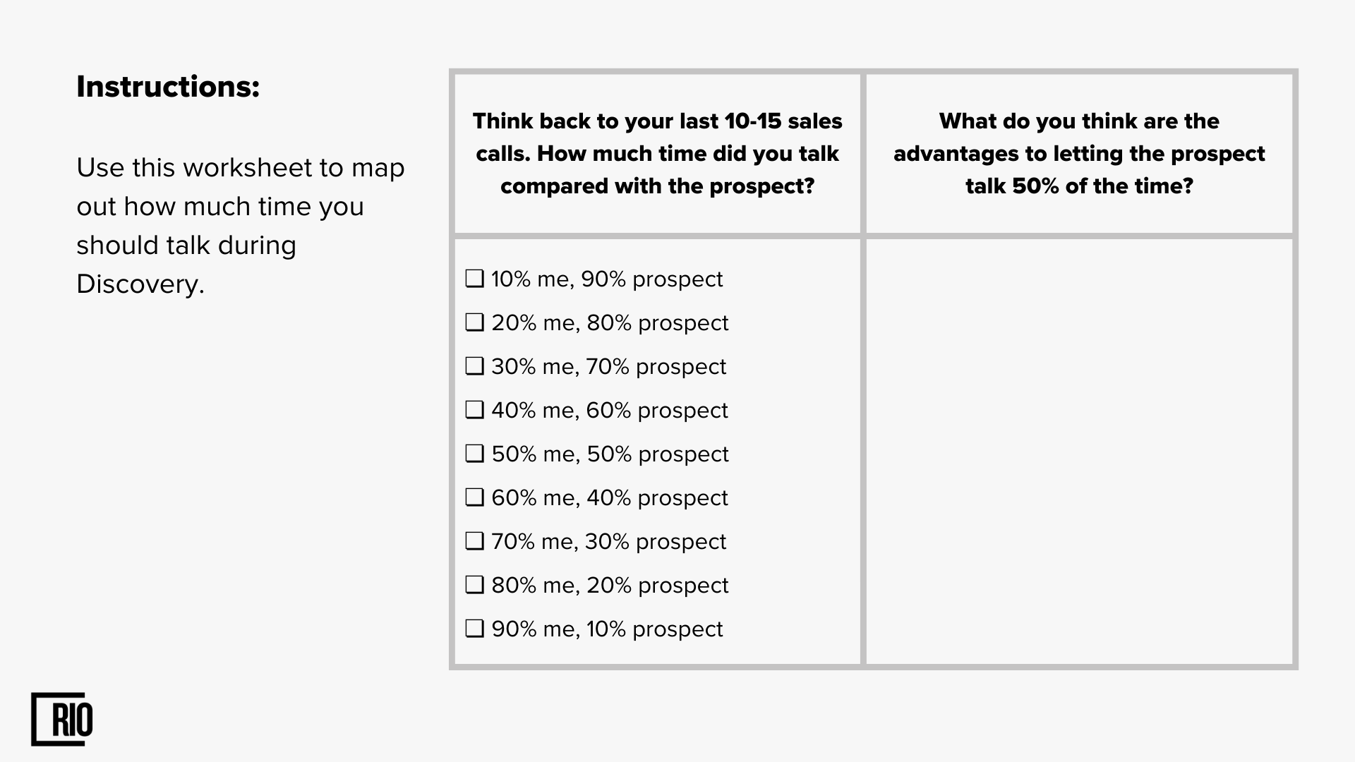 And the funniest thing here is that even this question is wrong to ask. Whenever you are on a call with prospects it's always about them and how much they talk. So the right question to ask yourself is how much should your prospect talk during the call.