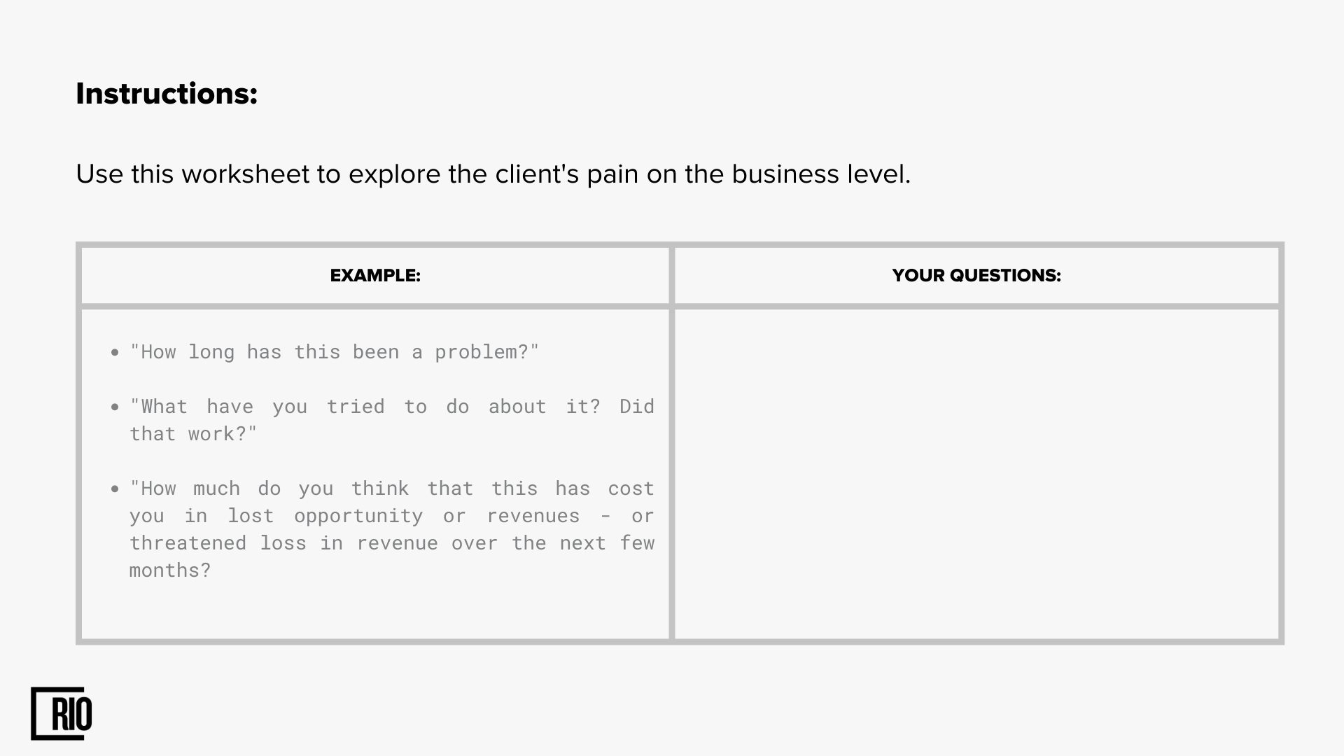 You explored initial pain and that conversation led you to this level. Now it’s time to start digging into the pain as it relates to the business and expand the issue using the following questions: